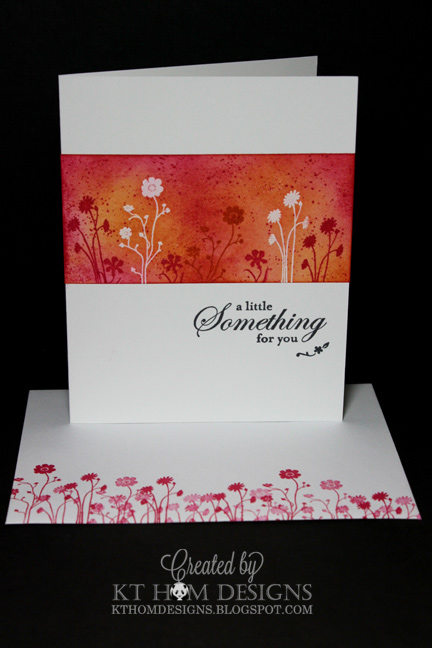 How to make this card: Cut a 2" x 4 1/4" rectangle and do all of the stamping, embossing and sponging on that piece of white card stock before adhering it to the front of an A2 card. Those Itty Bitty Background dots added that final finishing touch! Be sure to wipe off any ink on the white embossed images with Kleenex because it will rub off onto your hands, the card base and the envelope!
